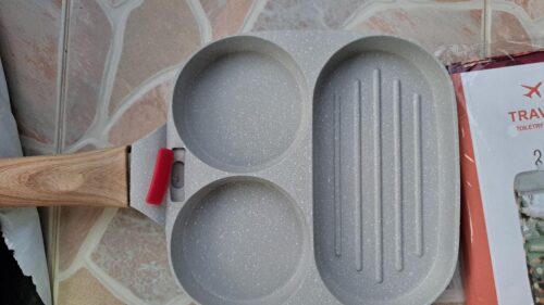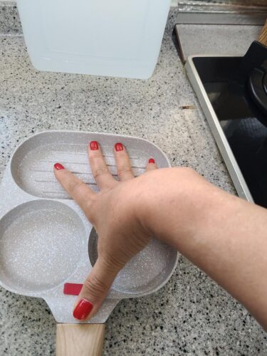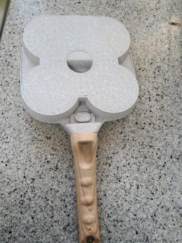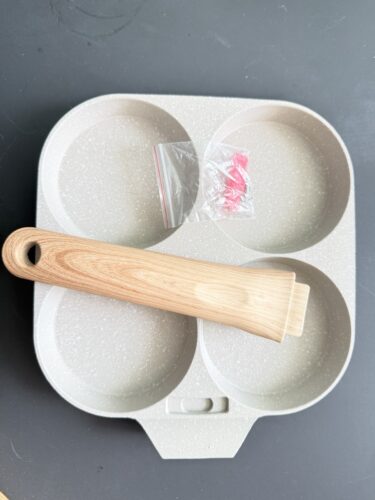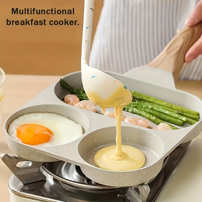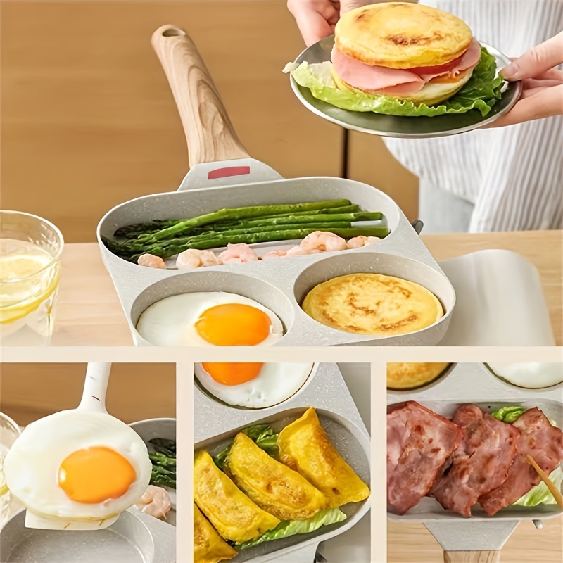 1pc Household Maifanshi 4-Compartment Non-Stick Aluminum Frying Pan with Wooden Handle - Multi-Use Breakfast Eggs, Hamburgers, Steaks & Shrimp Cookware, Even Heat Distribution, Easy Clean, Multicompartment Cooker | Ergonomic Kitchenware | Easyclean Surface photo review