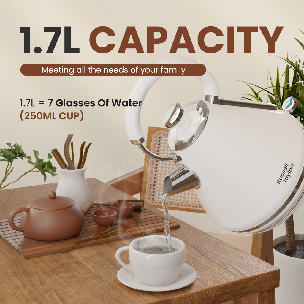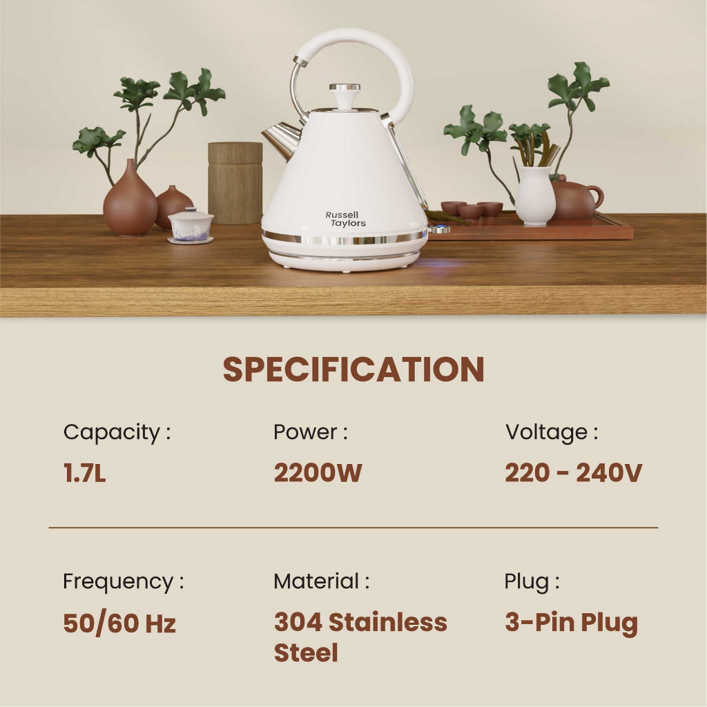 📌 VERSATILITY – Completely Cordless when off the base, the Russell Speedboil Kettle allows you easy and unobstructed pouring