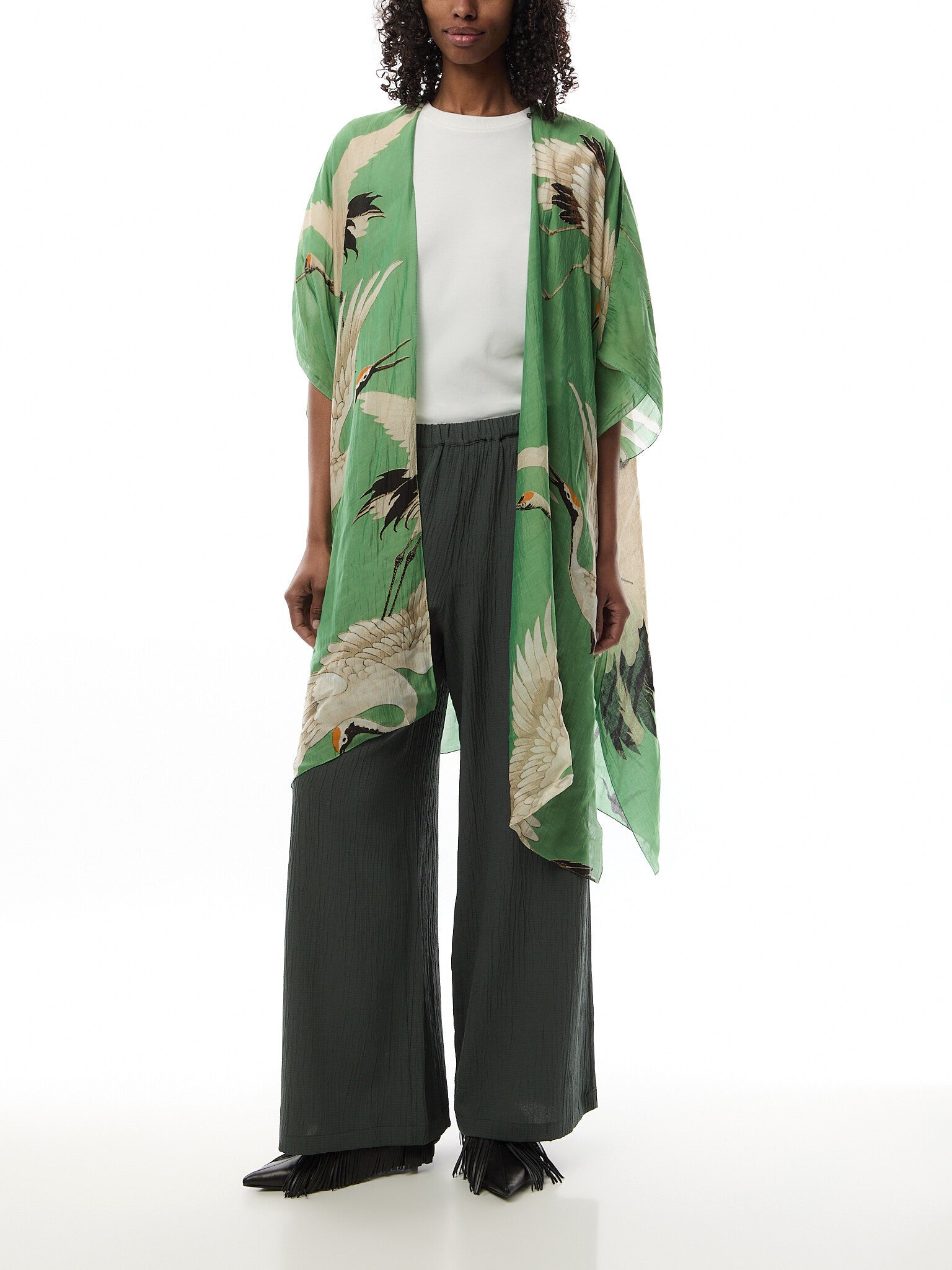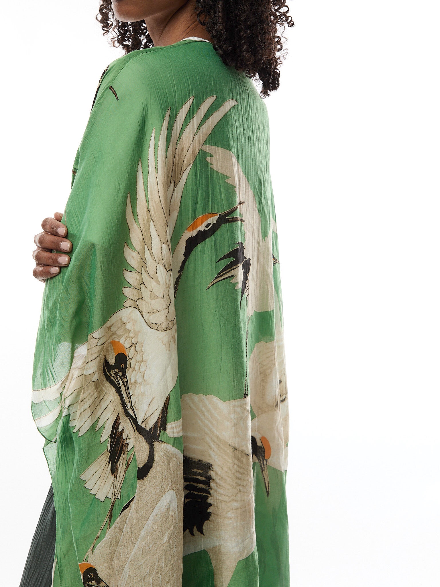 Storks and cranes have been a major art deco trend in both fashion and interiors and this Stork Throwover is perfect for anyone looking for something chic. stylish and in vogue!These lightweight throwovers make the perfect cover up. they’re mid-length with an open front and loose arms they are perfect for the warmer months or worn on holiday as the ideal resort wear.